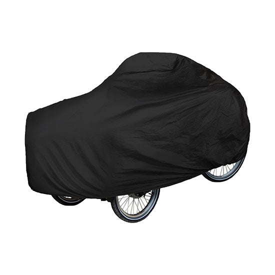 Absoluut. De hoes is gemaakt van duurzame 600D Oxford-stof, 100% waterdicht en UV-bestendig. Regen, sneeuw of zon – jouw bakfiets blijft altijd droog en beschermd.