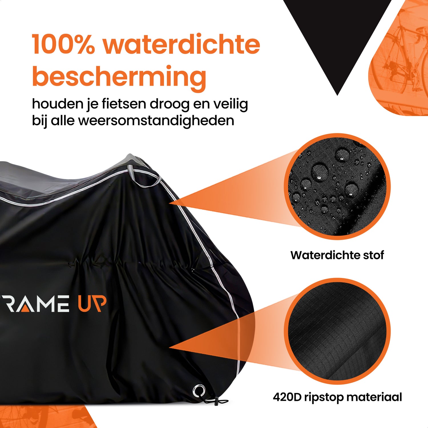 Gemaakt van duurzame 450D Oxford-stof met waterdichte coating en UV-bescherming. Regen, zon of sneeuw: jouw fiets blijft altijd droog en beschermd. Zo blijft hij langer mooi en klaar voor elk avontuur.”