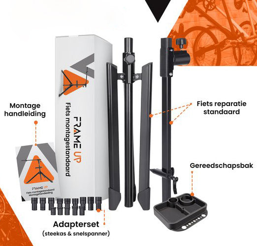 Zet jouw fiets stevig en stabiel vast met de montagestandaard van Frame Up. Perfect voor elke fietsliefhebber die graag sleutelt of onderhoud doet. Met deze standaard werk je comfortabel aan je fiets, waar en wanneer je maar wilt!