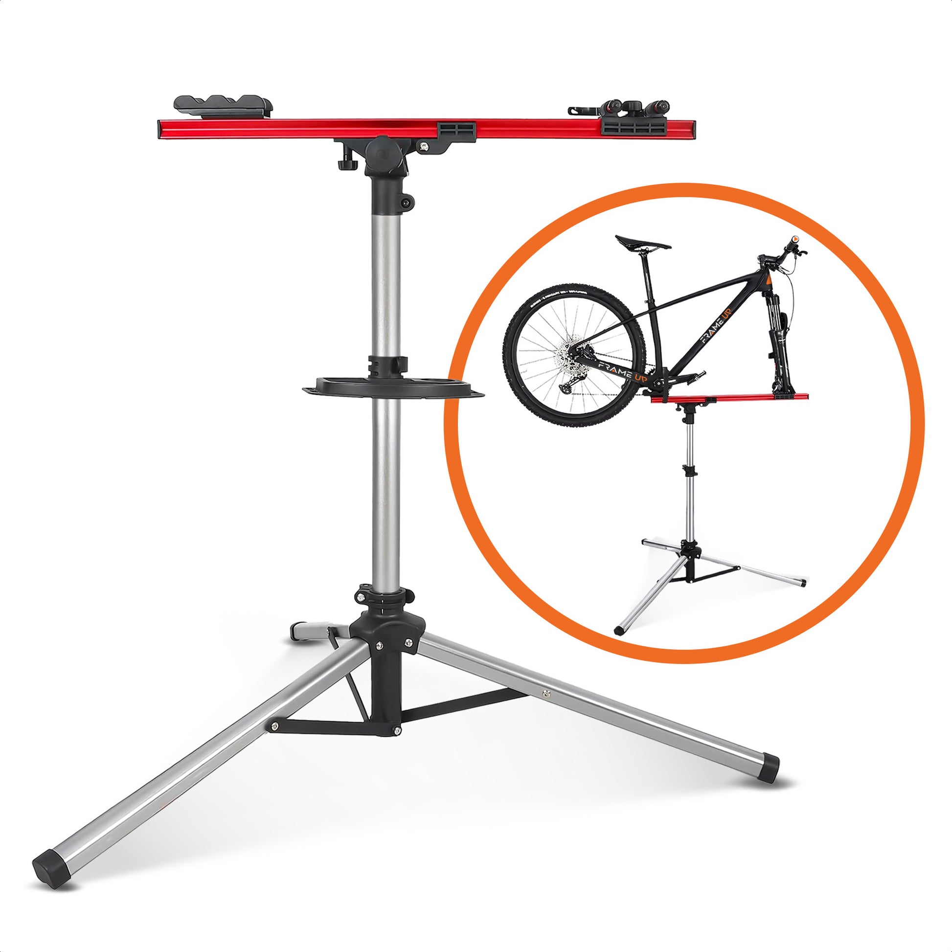 Merk: Frame Up – Materiaal: Aluminium – Kleur: Rood/Zilver – Max. belasting: 30 kg – Inclusief: Gereedschapsbakje, opberghoes, schoonmaakset